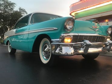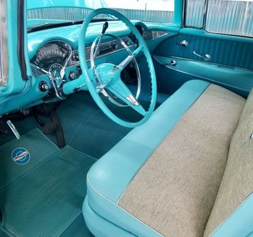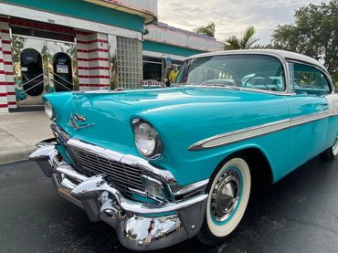1956 Chevrolet Bel Air Sport Coupe finished in arguably the best colour combination of India Ivory over Twilight Turquoise. Complimented with a matching two tone interior. A simply stunning car in every way and perhaps one of the most iconic designs of all things Americana. The car was subject to a full restoration a few years ago and kept in a private collection thereafter, the car still shows better than the day it left the factory. It has its original numbers matching 265cu 4 barrel motor with a two speed Powerglide automatic transmission. The interior is simply stunning and again presents as new. The car has recently been re-commissioned having been in storage for some time with new fluids, regulator and battery. Overall, this is a beautifully restored car in as new condition with hardly any imperfections to mention, starts on the first turn, drives impeccably well, the engine pulls strongly, steering tracks true and straight has no rattles or squeaks and the brakes pull up nice and straight. Probably one of the best originally restored Bel Airs I have had the pleasure of driving..a real head turner and of collector quality. This car was imported to the UK in 2021. The car today would be a lot more to purchase in the US and with the huge increases in shipping charges now represents excellent value at £45,995.