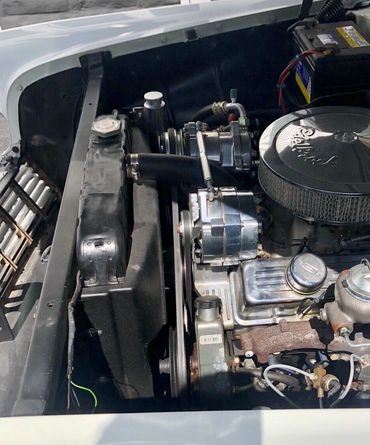 Power rack and pinion steering, vintage air conditioning (will need a charge) and a Kenwood sound system.