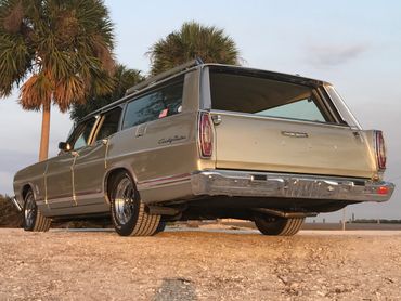 The car also featured the Ford 'Magic Tailgate' a design launched on the 66-67 station wagons that allowed the tailgate to be opened traditionally downwards or open outwards as a door to allow better access for the rear seats.The car is in just beautiful condition, the paintwork is great with only a few minor blemishes to mention on the rear tailgate where there is some blistering. The interior is perfect, with just a slight crack on the drivers arm rest trim. The glass and chrome are excellent. The engine bay is very nicely detailed and the motor has no oil leaks! The car sits very nicely on a set of period correct Ford Rally wheels shod with BF Goodrich radial tyres.