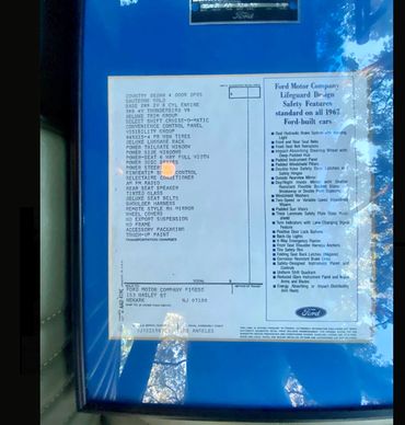 1967 FORD COUNTRY SEDAN 10 SEATER STATION WAGON. NOW SOLD! Finished in stunning Sauterne Gold with contrasting Ivy/ Gold interior. These wagons are incredibly rare to find in any condition but to find one in this condition and with this cars provenance would be virtually impossible!Specially ordered new for export by the then President of the Mexican Department for Trade and Commerce, this car was optioned with just about everything Ford could put in it for 67 and delivered new in Tijuana Mexico. The car is supplied with all the supporting evidence including its original bill of sale, window sticker, sales literature, owners handbooks etc. The Marti report states it was one of one ordered in this configuration. The options included: